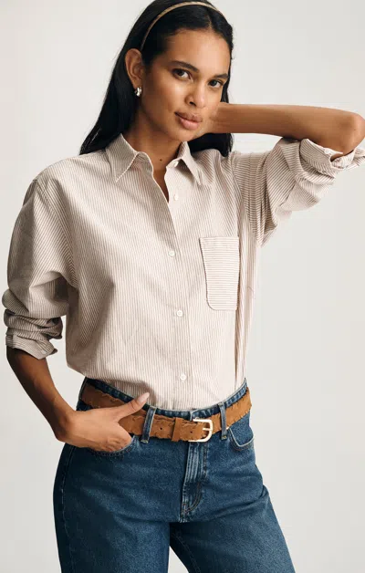 Cropped Long Sleeve Button-up Shirt In Beige Stripe In Sand