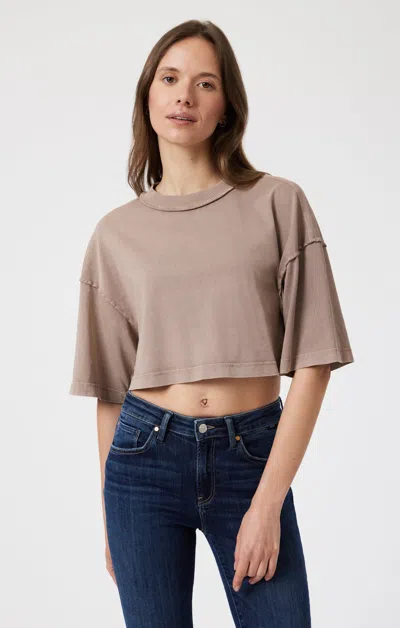 Drop Shoulder Cropped T-shirt In Moon Rock In Brown