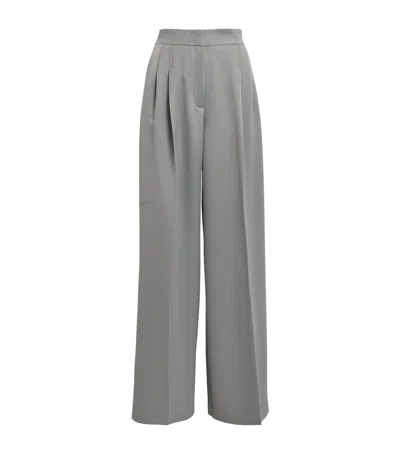 Satin Pleated Wide-leg Trousers In Gray
