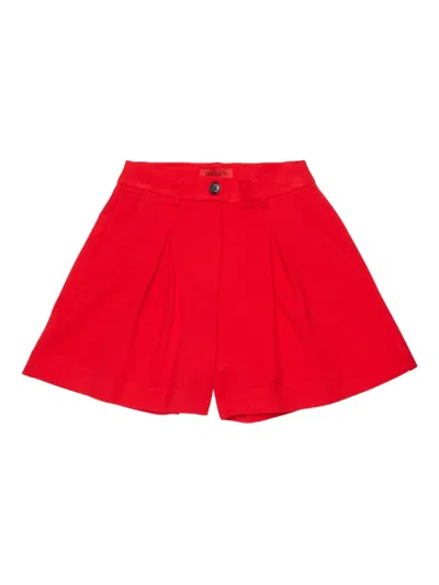Pleats Logo-patch Shorts In Red