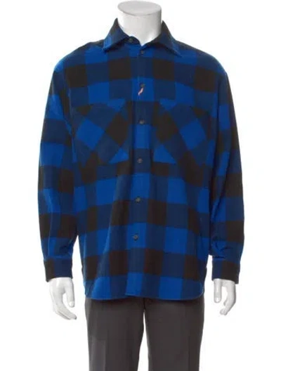 Pre-owned Virgin Wool Plaid Print Shirt W/ Tags In Blue