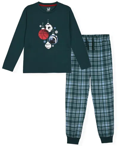 Kids' Little And Big Boys 2-piece Sports Top And Plaid Jogger Pants Set In Green
