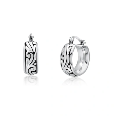 Sterling Silver Balinese Inspired Click Top Round Hoop Earrings (0.85 Inches)