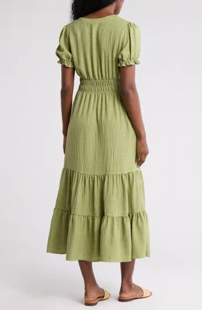 Short Sleeve Tiered Maxi Shirtdress In Green