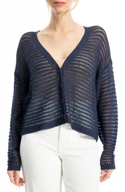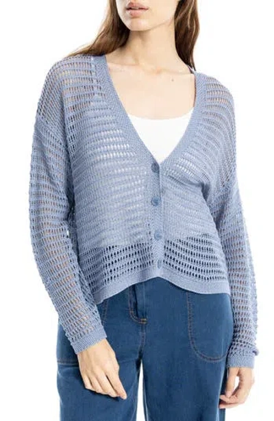 Open Stitch Cardigan In Blue