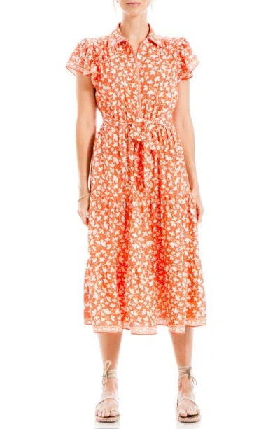 Ruffle Collar Print Tiered Maxi Dress In Papaya/ Leafy Cherry Blossoms