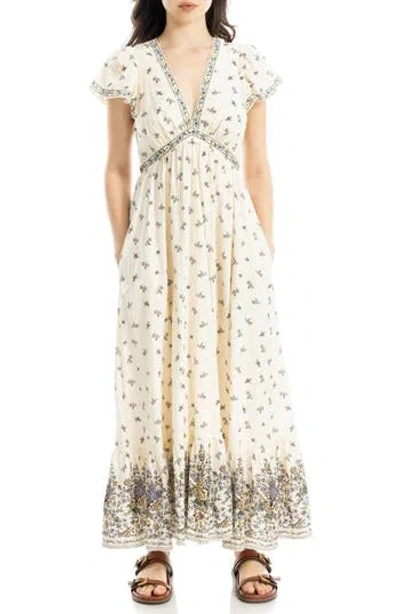 Floral Flutter Sleeve Maxi Dress In Neutral
