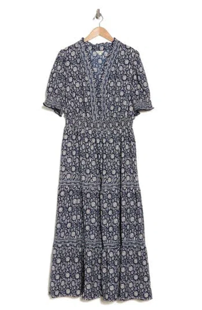 Side Ruched Short Sleeve V-neck Sweater In Denim
