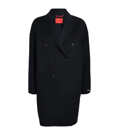 Virgin Wool Double-breasted Coat In Black