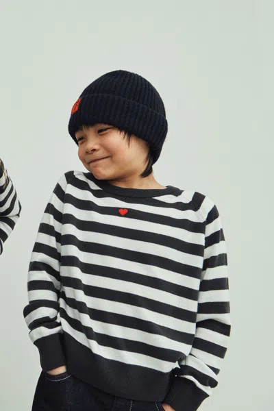 Kids' Wool Crew-neck Pullover With Stripes In Black