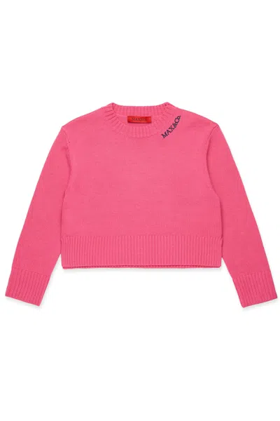 Kids' Wool Blend Pullover With Embroidered Logo In Pink