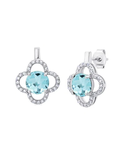 Sterling Silver Clover Gemstone Stud Earrings With With White Topaz Accent In Metallic