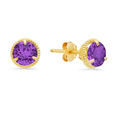 14k Yellow Gold Roped Halo Gemstone Round Stud Earrings For Women 6mm In Purple