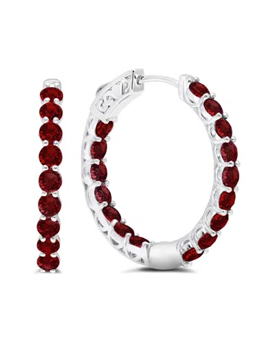 Silver 2.20 Ct. Tw. Lab-grown Ruby Hoop Earrings In Metallic