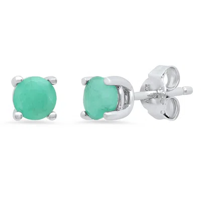 Sterling Silver 5mm Gemstone Round Stud Earrings With Push Backs In Metallic