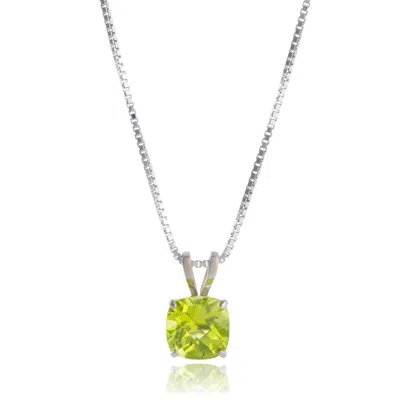 14k White Gold 8mm Cushion Cut Gemstone Pendant Necklaces With 18 Inch Box Chain In Green