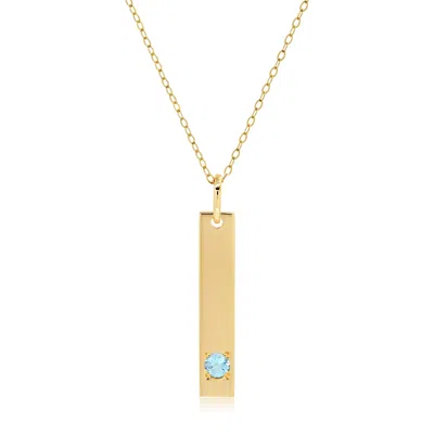 14k Yellow Gold Bar Pendant Necklace With 3mm Small Round Gemstone Adjustable Cable Chain 16 Inches In Blue