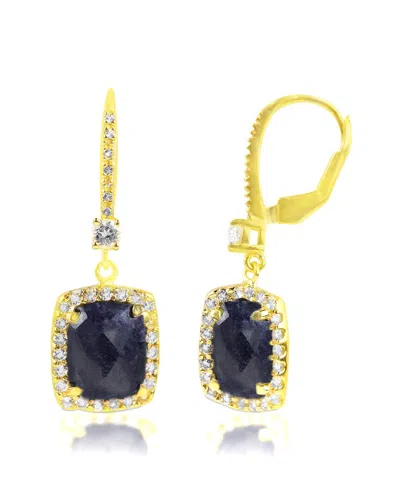18k Gold Plated Genuine Gemstone Cushion Cut Dangle Drop Earrings With White Topaz Accents