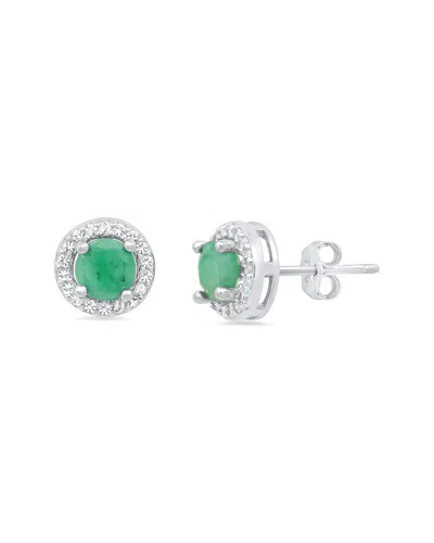 Sterling Silver Round Genuine Gemstone And White Topaz Earring 4mm In Green