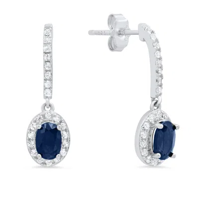 Sterling Silver Halo Sunburst Oval Gemstone Leverback Earrings With White Topaz Accent In Blue