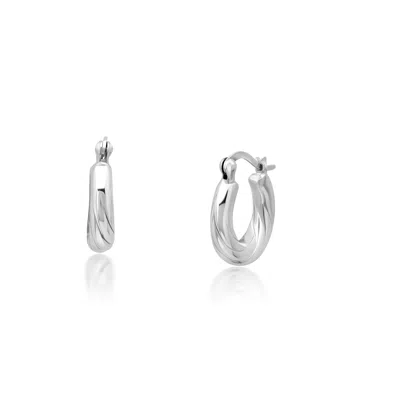 Sterling Silver Round Half Twist Hoop Earrings In Metallic