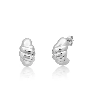 Sterling Silver Twist J-hoop Earrings In Metallic