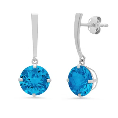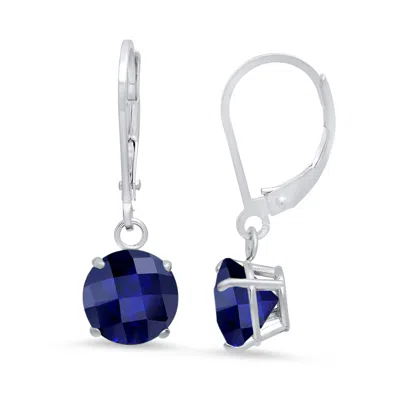 14k Solid White Gold Gemstone Dangle Leverback Earrings (8mm) In Blue
