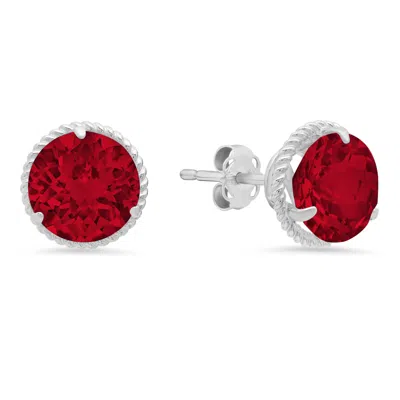 14k White Gold Roped Halo Round-cut Gemstone Stud Earrings (8mm) In Red