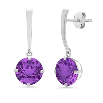 14k White Gold Solitaire Round-cut Gemstone Drop Earrings (8mm) In Metallic