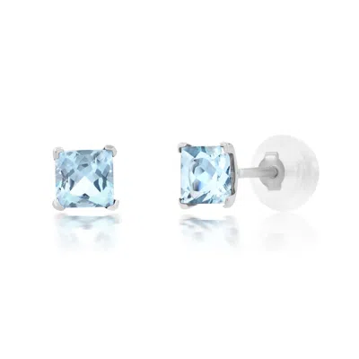 14k White Gold Solitaire Princess-cut Gemstone Stud Earrings (7mm) In Blue