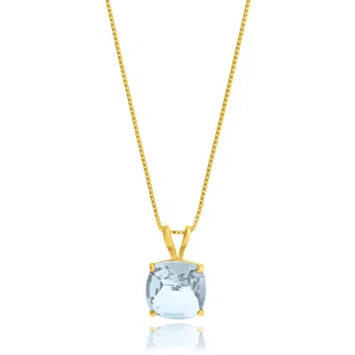 14k Yellow Gold 8mm Cushion Cut Gemstone Pendant Necklaces With 18 Inch Box Chain