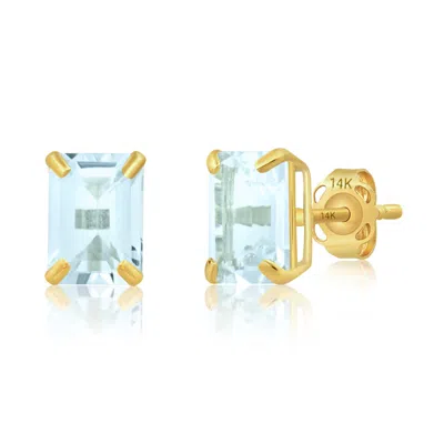 14k Yellow Gold Solitaire Emerald-cut Gemstone Stud Earrings (7x5mm)