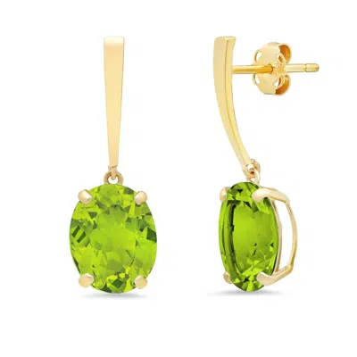 14k Yellow Gold Solitaire Oval-cut Gemstone Drop Earrings (10x8mm) In Green