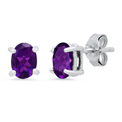 Sterling Silver 5mm Gemstone Oval Stud Earrings With Push Backs In Metallic