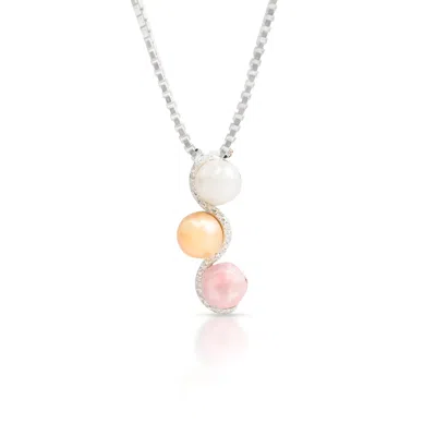 Sterling Silver Multi Color Freshwater Pearl Necklace With Diamond Accents In Pink