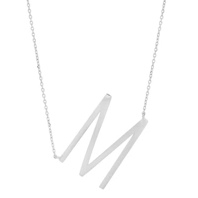 10k Solid White Gold Large Sideways Block Letter Initial With Extendable Cable Chain, 16 To 18 Inche In Silver