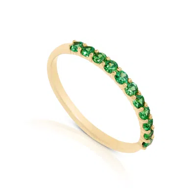 14k Gold Vermeil Birthstone 2mm Cubic Zirconia Half Eternity Ring In Green