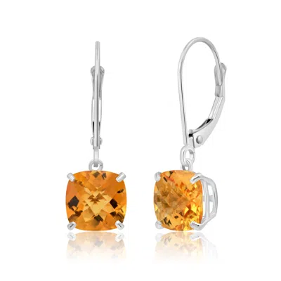 14k Solid White Gold Gemstone Dangle Leverback Earrings (8mm) In Orange