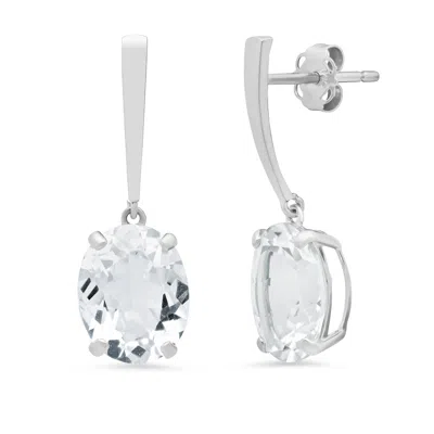 14k White Gold Solitaire Oval-cut Gemstone Drop Earrings (10x8mm) In Silver