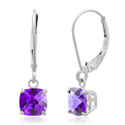 Solid 10k White Gold Cushion Cut Dangle Gemstone Leverback Earrings In Purple