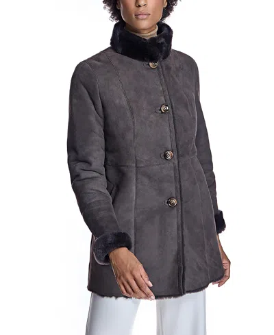 Mixed-media Shearling Coat With Zipper Trim In Navy