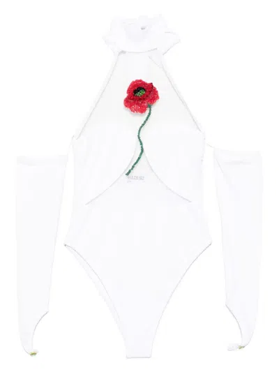 Beaded-flower Swimsuit In White