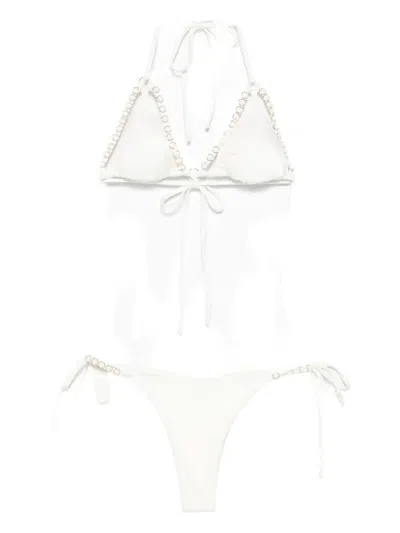 Ring-embellished Triangle Bikini In White
