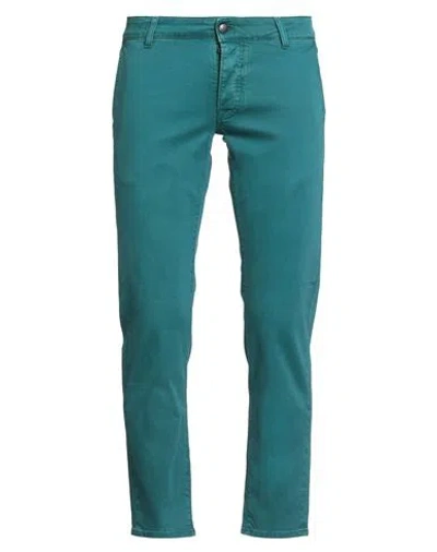 Man Pants Deep Teal Size 32 Cotton, Elastane In Green