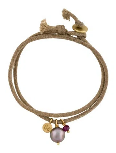 Pre-owned 18k Pearl & Ruby Wrap Charm Bracelet In Multi