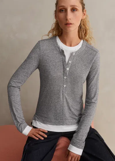 Double-layer Look Long Sleeve Top In Grey Melange/soft White