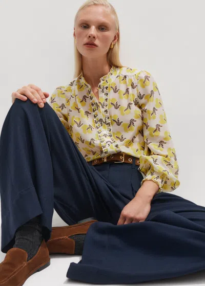 Silk Cotton Bird Of Paradise Print Blouse In Sunlight Yellow/light Cream