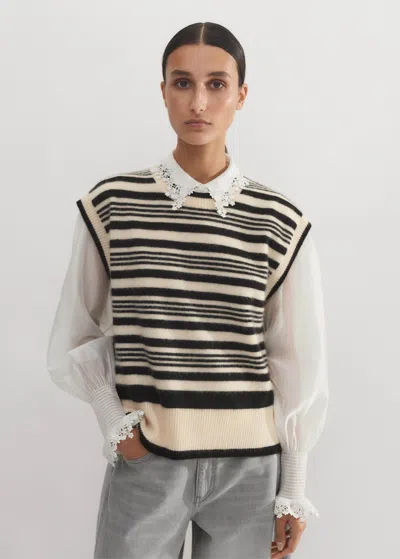 Boiled Cashmere Striped Sweater Vest In Cream/black