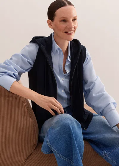 Cashmere Sleeveless Relaxed Zip Hoody In Navy