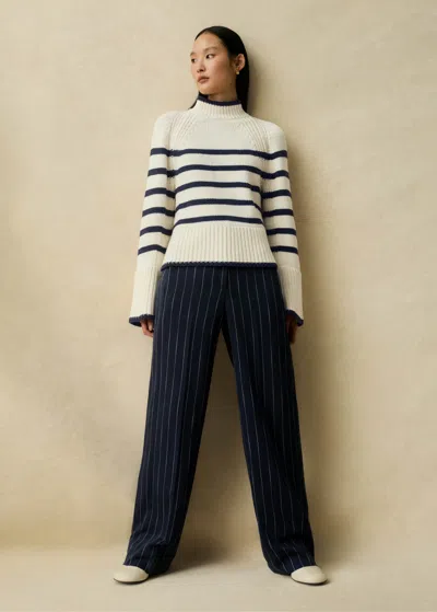 Chunky Cotton Merino High Neck Sweater In Cream/navy